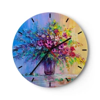 Zegar ścienny - Bukiet kolorowych kwiatów w szklanym wazonie na tle pastelowym - 30x30cm - Dar letnirj łąki - Nowoczesna dekoracja ścienna do salonu, kuchni i sypialni ARTTOR