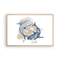 Obraz na płótnie - Abstrakcyjne niebieskie wieloryby na jasnym tle - 70x100cm - Przyjaźń czy kochanie? - Nowoczesna dekoracja ścienna do salonu i sypialni ARTTOR