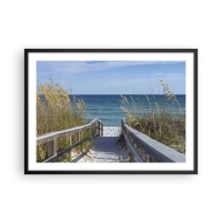 Plakat w czarnej ramie - Ścieżka na plażę z widokiem na morze - 70x50cm - W słońcu, na wietrze - Nowoczesna dekoracja ścienna do salonu i sypialni ARTTOR