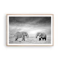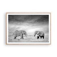 Obraz na płótnie - Dwa słonie na tle afrykańskiej sawanny - 80x120cm - Szare jest piękne - Nowoczesna dekoracja ścienna do salonu i sypialni ARTTOR
