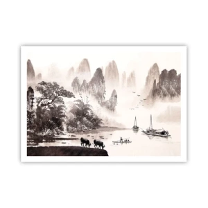 Plakat - Malowniczy pejzaż w azjatyckim stylu z mglistymi górami - 100x70cm - Egzotyczna codzienność Wschodu - Nowoczesna dekoracja ścienna do salonu i sypialni ARTTOR