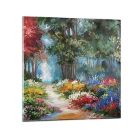 Obraz na szkle - Leśny ogród, kwietny las - 70x70 cm