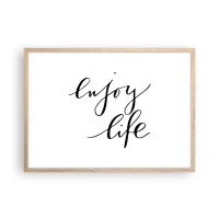 Obraz na płótnie - Cytat 'enjoy life' w czarnej kaligrafii na białym tle - 70x100cm - Nic dodać… - Nowoczesna dekoracja ścienna do salonu i sypialni ARTTOR
