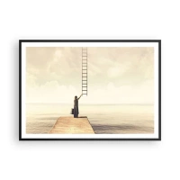 Plakat w czarnej ramie - Kobieta stojąca na molo z drabiną prowadzącą w niebo - 100x70cm - Magiczna podróż - Nowoczesna dekoracja ścienna do salonu i sypialni ARTTOR