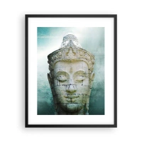 Obraz na płótnie - Posąg Buddy z delikatną mgłą na tle zieleni - 100x70cm - Poszukując światła - Nowoczesna dekoracja ścienna do salonu, kuchni i sypialni ARTTOR