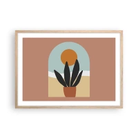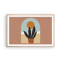 Obraz na płótnie - Czarna roślina w doniczce na tle słońca - 70x100cm - Drobne radości - Nowoczesna dekoracja ścienna do salonu i sypialni ARTTOR