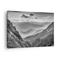 Obraz na płótnie - Czarno-biały krajobraz górski z chmurami nad szczytami - 120x80cm - Aż po horyzont - Nowoczesna dekoracja ścienna do salonu, kuchni i sypialni ARTTOR