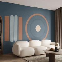 Obraz na szkle - Abstract geometric shapes in muted colors, featuring circles and lines - 70x50cm - Istota rzeczy - Nowoczesna dekoracja ścienna do salonu i sypialni ARTTOR