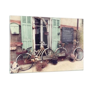 Obraz na szkle - Prowincjonalna sceneria z rowerami - 120x80cm - Niech żyje prowincja - Nowoczesna dekoracja ścienna do salonu, kuchni i sypialni ARTTOR