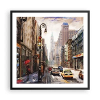 Plakat w czarnej ramie - Nowy Jork – w deszczu tez kolorowy - 60x60 cm