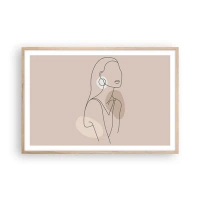 Obraz na płótnie - Minimalistyczna ilustracja kobiety z konturów na beżowym tle - 70x100cm - Ikona dziewczęcości - Nowoczesna dekoracja ścienna do salonu i sypialni ARTTOR