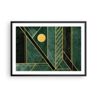Plakat w czarnej ramie - Geometria w zieleni i złocie z eleganckim wzorem - 70x50cm - Dynamika złota i lazuru - Nowoczesna dekoracja ścienna do salonu i sypialni ARTTOR
