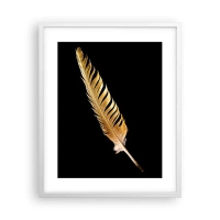 Obraz na płótnie - Złote pióro na czarnym tle - 80x120cm - Nie lada piórem opatrzony… - Nowoczesna dekoracja ścienna do salonu i sypialni ARTTOR