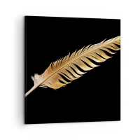 Obraz na płótnie - Złote pióro na czarnym tle - 70x100cm - Nie lada piórem opatrzony… - Nowoczesna dekoracja ścienna do salonu i sypialni ARTTOR