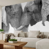 Fototapeta Premium Canvas - Dwa słonie w czułym geście na monochromatycznym tle - 100x70cm - Serdeczne wyznanie - Nowoczesna dekoracja ścienna do salonu i sypialni ARTTOR
