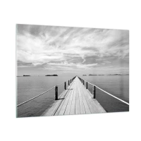 Obraz na szkle - Drewniane molo prowadzące w dal po spokojnym morzu - 100x70cm - A może podróż… - Nowoczesna dekoracja ścienna do salonu, kuchni i sypialni ARTTOR