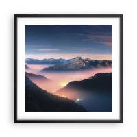 Plakat w czarnej ramie - Światło w dolinach - 60x60 cm