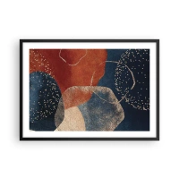 Plakat w czarnej ramie - Abstrakcyjne kształty w odcieniach czerwieni i błękitu - 70x50cm - Lekkość bytu - Nowoczesna dekoracja ścienna do salonu i sypialni ARTTOR
