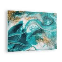 Obraz na szkle - Abstrakcyjna kompozycja w turkusie z akcentami złota - 70x50cm - Rzeka złota - Nowoczesna dekoracja ścienna do salonu i sypialni ARTTOR
