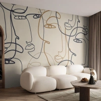 Fototapeta Standard Eco - Konturowe twarze narysowane jedną linią - 100x70cm - Portret zwielokrotniony - Nowoczesna dekoracja ścienna do salonu i sypialni ARTTOR