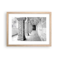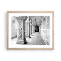 Plakat w czarnej ramie - Zabytkowe kolumny w monochromatycznym ujęciu - 100x70cm - A dokąd to…? - Nowoczesna dekoracja ścienna do salonu i sypialni ARTTOR