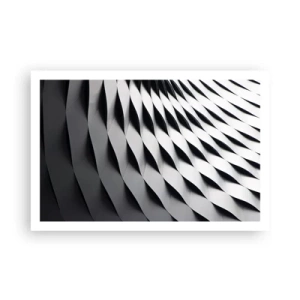 Plakat - Abstrakcyjny wzór geometryczny w odcieniach czerni i bieli - 100x70cm - Na powierzchni fal - Nowoczesna dekoracja ścienna do salonu i sypialni ARTTOR