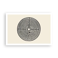 Plakat - Czarno-biały okrągły labirynt na jasnym tle - 100x70cm - Tajemniczy porządek - Nowoczesna dekoracja ścienna do salonu i sypialni ARTTOR