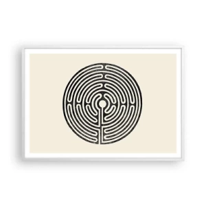 Plakat w czarnej ramie - Czarno-biały okrągły labirynt na jasnym tle - 100x70cm - Tajemniczy porządek - Nowoczesna dekoracja ścienna do salonu i sypialni ARTTOR