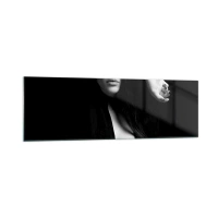 Obraz na szkle - Stylowy portret kobiety w czarno-białej tonacji - 160x50cm - Szkoła uwodzenia - Nowoczesna dekoracja ścienna do salonu i sypialni ARTTOR