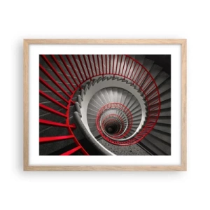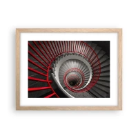 Plakat w czarnej ramie - Spiralne schody z czerwonymi poręczami w dynamicznej perspektywie - 100x70cm - Zabawy architektury - Nowoczesna dekoracja ścienna do salonu i sypialni ARTTOR