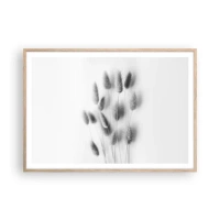 Plakat w czarnej ramie - Delikatne trawy w odcieniach szarości na białym tle - 100x70cm - Jej puszystość trawa - Nowoczesna dekoracja ścienna do salonu i sypialni ARTTOR