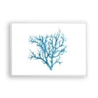 Plakat w czarnej ramie - Błękitny koral na białym tle o minimalistycznym charakterze - 100x70cm - Morski filigran - Nowoczesna dekoracja ścienna do salonu i sypialni ARTTOR