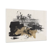 Obraz na szkle - Abstrakcyjna kompozycja w czerni i złocie na jasnym tle - 100x70cm - Kompozycja z pasją - Nowoczesna dekoracja ścienna do salonu, kuchni i sypialni ARTTOR