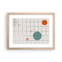 Plakat w czarnej ramie - Abstrakcyjne okręgi w kolorach na tle geometrycznej siatki - 100x70cm - Uwięzione. My czy one? - Nowoczesna dekoracja ścienna do salonu i sypialni ARTTOR