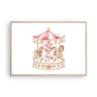 Plakat w czarnej ramie - Kolorowa karuzela w stylu vintage z końmi - 100x70cm - Słodki świat dzieciństwa - Nowoczesna dekoracja ścienna do salonu i sypialni ARTTOR