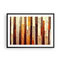 Plakat w czarnej ramie - Geometryczna kompozycja w odcieniach drewna i złota - 70x50cm - Hymn leśnych drzew - Nowoczesna dekoracja ścienna do salonu i sypialni ARTTOR