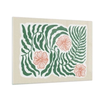 Obraz na szkle - Zielone liście i czerwone kwiaty w graficznym układzie - 70x50cm - Rozkwitłe w zieleni - Nowoczesna dekoracja ścienna do salonu i sypialni ARTTOR