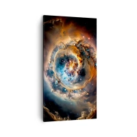 Obraz na płótnie - Abstrakcyjna wizja kosmicznej eksplozji w odcieniach złota i błękitu - 120x80cm - Początek - Nowoczesna dekoracja ścienna do salonu, kuchni i sypialni ARTTOR