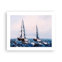 Plakat - Żaglówki na wzburzonym morzu w malarskiej kompozycji - 100x70cm - Braterstwo wiatru - Nowoczesna dekoracja ścienna do salonu i sypialni ARTTOR