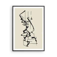 Plakat w czarnej ramie - Abstrakcyjny rysunek gór w czarno-białej kolorystyce - 100x70cm - Być może pejzaż - Nowoczesna dekoracja ścienna do salonu i sypialni ARTTOR