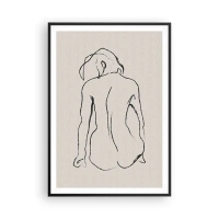 Plakat w czarnej ramie - Subtelny szkic dziewczęcej sylwetki z widokiem z tyłu - 100x70cm - Akt dziewczęcy - Nowoczesna dekoracja ścienna do salonu i sypialni ARTTOR