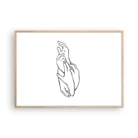 Plakat w czarnej ramie - Minimalistyczny szkic dłoni splecionych w geście delikatności - 100x70cm - Dobry dotyk - Nowoczesna dekoracja ścienna do salonu i sypialni ARTTOR