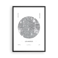 Plakat w czarnej ramie - Minimalistyczna mapa Los Angeles w czarno-białej tonacji - 50x70cm - Anatomia Los Angeles - Nowoczesna dekoracja ścienna do salonu i sypialni ARTTOR