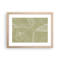 Plakat w czarnej ramie - Zielono-białe linie w abstrakcyjnej kompozycji - 100x70cm - Abstrakcja misterna w bieli - Nowoczesna dekoracja ścienna do salonu i sypialni ARTTOR