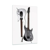Obraz na szkle - Czarno-białe gitary elektryczne na białym tle - 50x70cm - Harmonia kształtów - Nowoczesna dekoracja ścienna do salonu, kuchni i sypialni ARTTOR