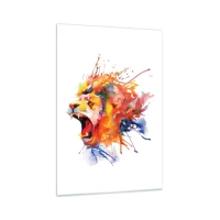 Obraz na szkle - Kolorowy portret lwa w dynamicznym stylu - 70x100cm - Wybuchnąć gniewem - Nowoczesna dekoracja ścienna do salonu i sypialni ARTTOR