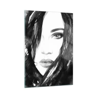 Obraz na szkle - Kobiece czarno-białe portrety w stylu akwareli - 50x70cm - Portret damy w czerni i bieli - Nowoczesna dekoracja ścienna do salonu, kuchni i sypialni ARTTOR