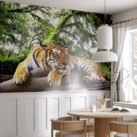 Fototapeta Standard Eco - Tygrys odpoczywający w gęstej tropikalnej dżungli - 100x70cm - Z wyrazami szacunku - Nowoczesna dekoracja ścienna do salonu i sypialni ARTTOR