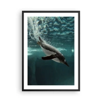 Plakat w czarnej ramie - Pingwin płynący pod wodą - 50x70cm - Witaj w moim świecie - Nowoczesna dekoracja ścienna do salonu i sypialni ARTTOR