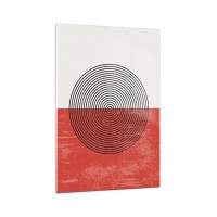Obraz na szkle - Geometryczny wzór z koncentrycznymi kołami na czerwono-białym tle - 70x100cm - W samo sedno - Nowoczesna dekoracja ścienna do salonu i sypialni ARTTOR